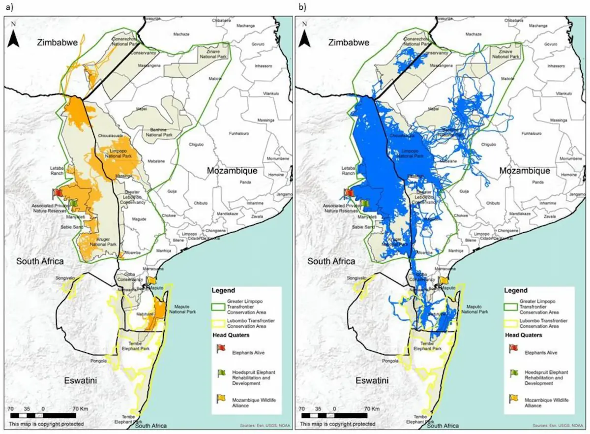 It is known that the elephants use the Limpopo River to cross in between the KNP, Zimbabwe and Northern Tuli in Botswana as documented by the research-based NGO Elephants Alive. The collar data from this elephant cow is intended to document the corridor movements and to establish an elephant corridor in the region, as well as to keep tabs on any human-elephant conflict in the area.