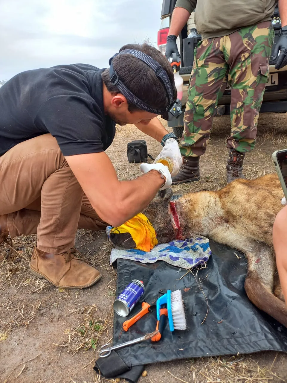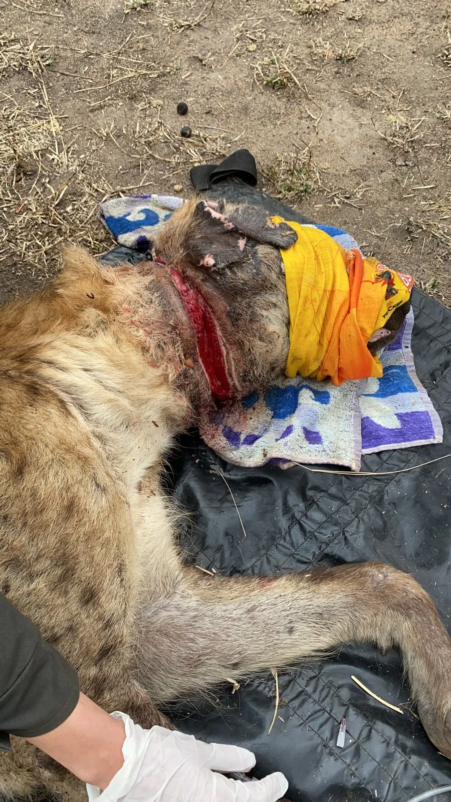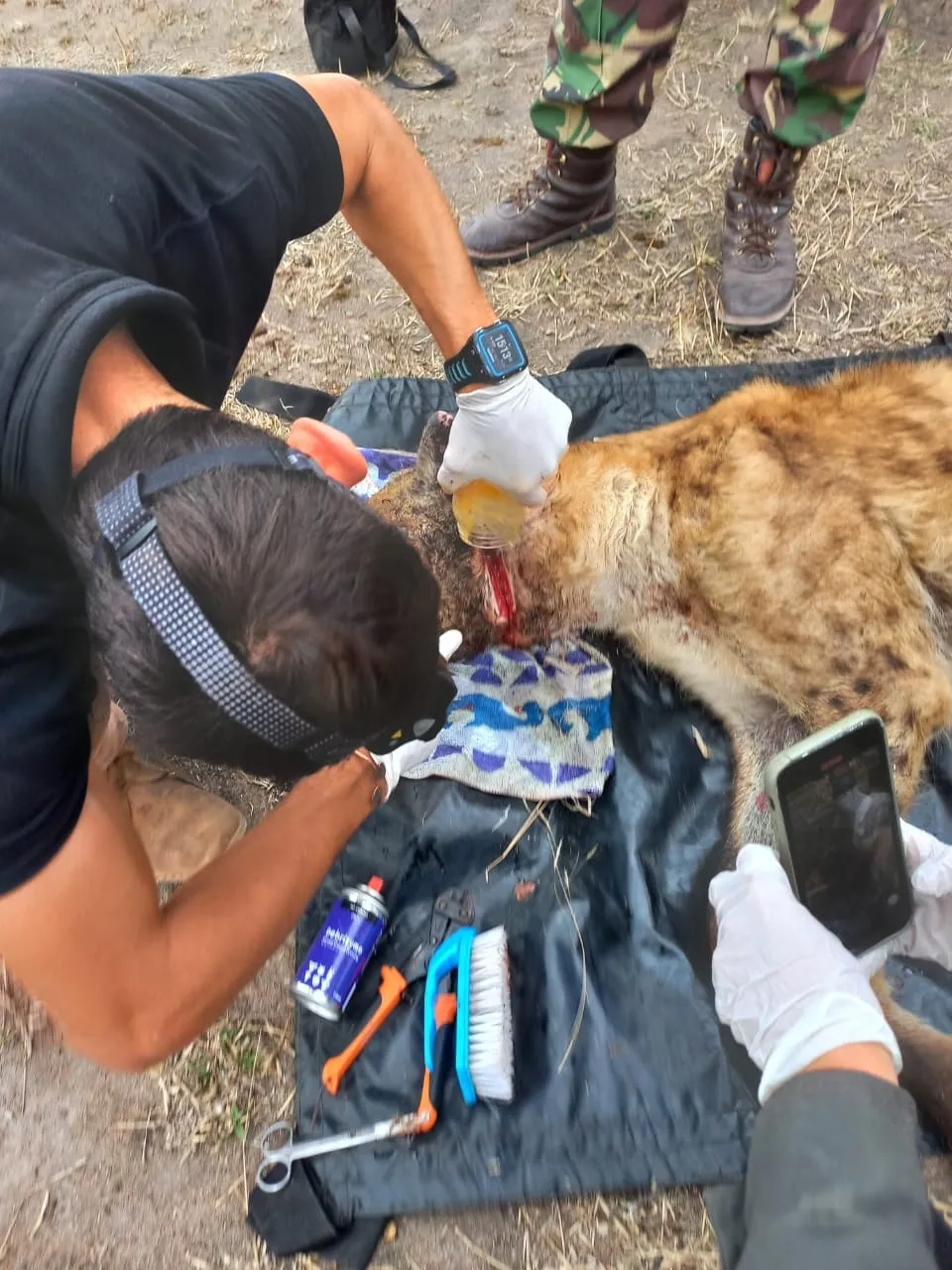 Operation done, Joel gave the hyena the reversal drug and in no time it got up and moved off - feeling hugely relieved I am sure not to have the tight wire around his neck anymore.