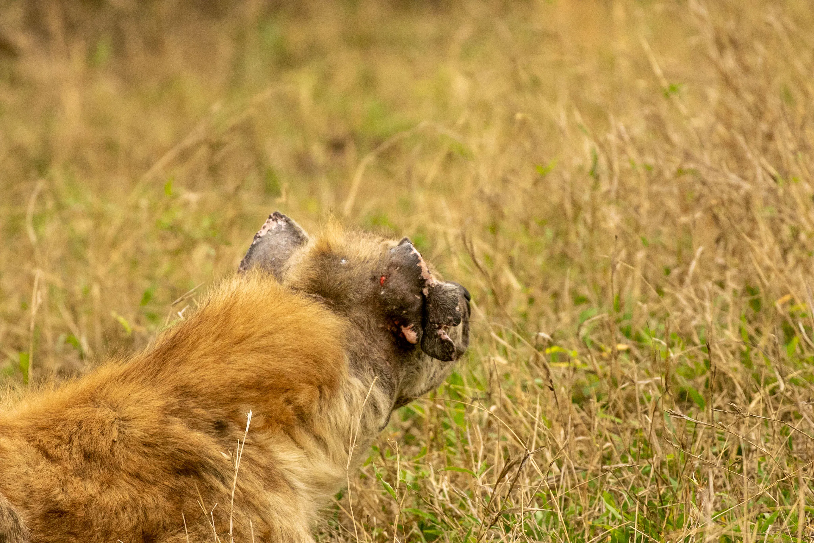 I went back to Mala Mala a month later and managed to see the same hyena again, trying to scavenge some food from a leopard kill! It was clear he had gained weight and his condition had definately improved. The wound was still visable but fantastic to it ooking 100 times better. A slow heaing process for sure, but it was a huge relief to see the hyena again and see it doing well.