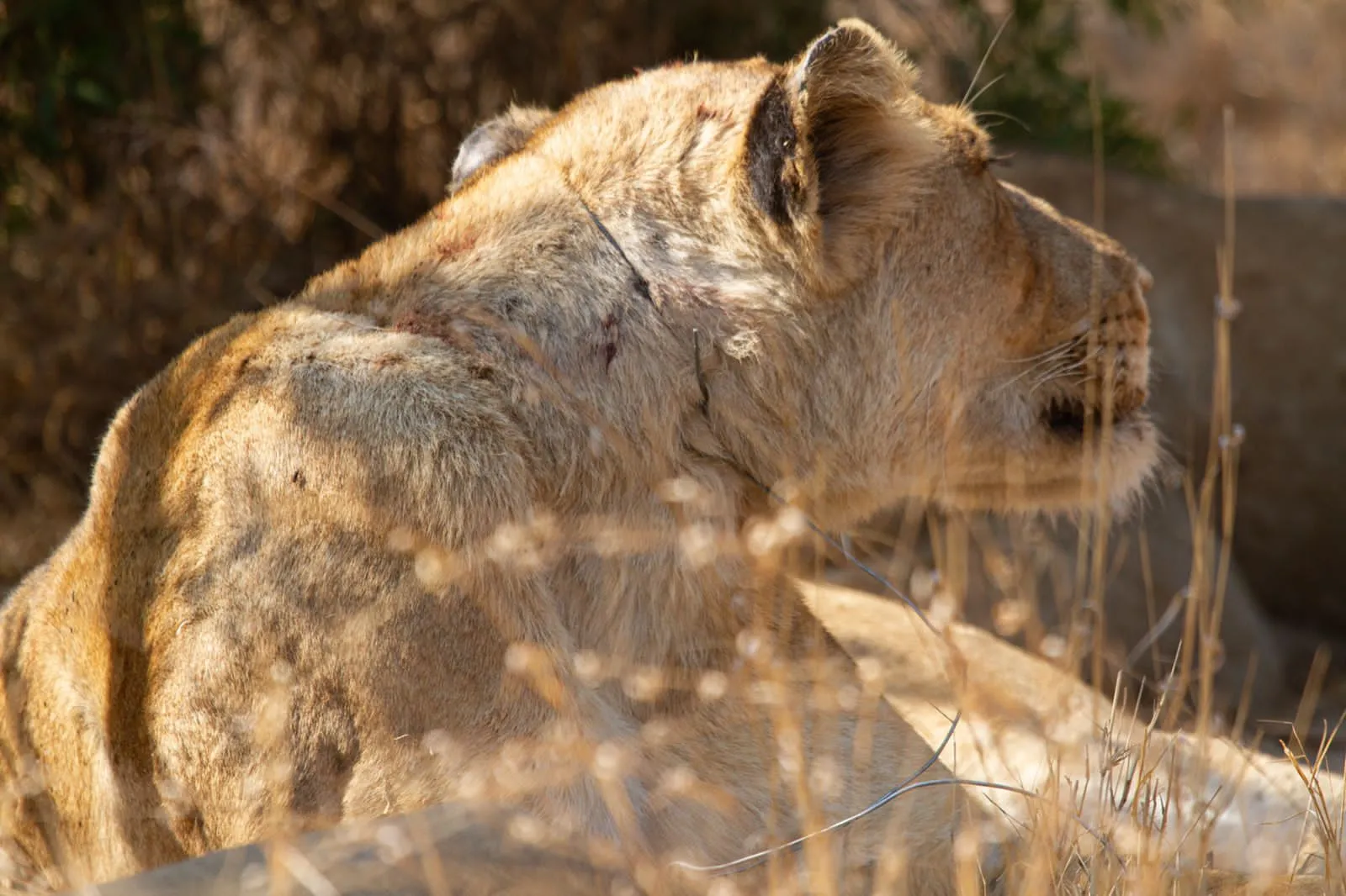 While filming a Safari Live broadcast for @WildEarthLIVE, guides & viewers noticed a snare on an older lionesses (10y+) of the Thalamati pride in Djuma Game Reserve (Sabi Sands). Luckily, the snare hadn’t cut deep (yet), which means it might have been placed by an unexperienced poacher.