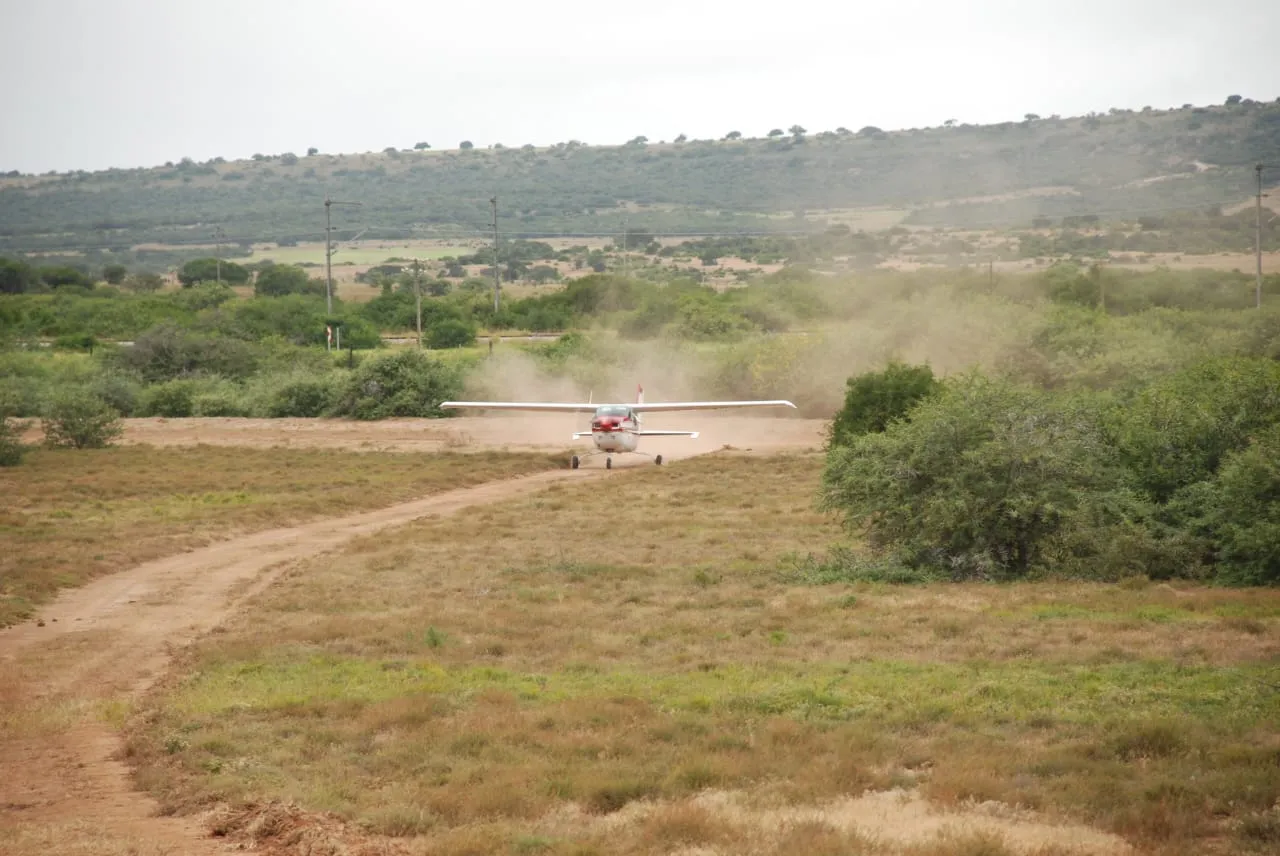 After a brief drive through the beautiful Kalahari bushveld, the lionesses were placed in the shade of the aircraft's wings. Before loading, a small top-up dose was administered to ensure they remained sedated during loading and take-off. As the lionesses were slightly heavier than expected, loading them both into the aircraft proved a challenging task. Nevertheless, both animals were safely loaded, and the final preparations for take-off were completed. Each lioness was given an intravenous drip to maintain blood flow and was provided with intranasal oxygen. Once the plane was positioned for take-off, we smoothly became airborne, beginning an almost four-hour journey to Addo Elephant Park. While the initial flight to Khamab had been uneventful, the journey to Addo proved to be a turbulent four-hour challenge. The lionesses were closely monitored throughout the flight and administered additional drugs to maintain immobilisation, ensuring the safety of all onboard.