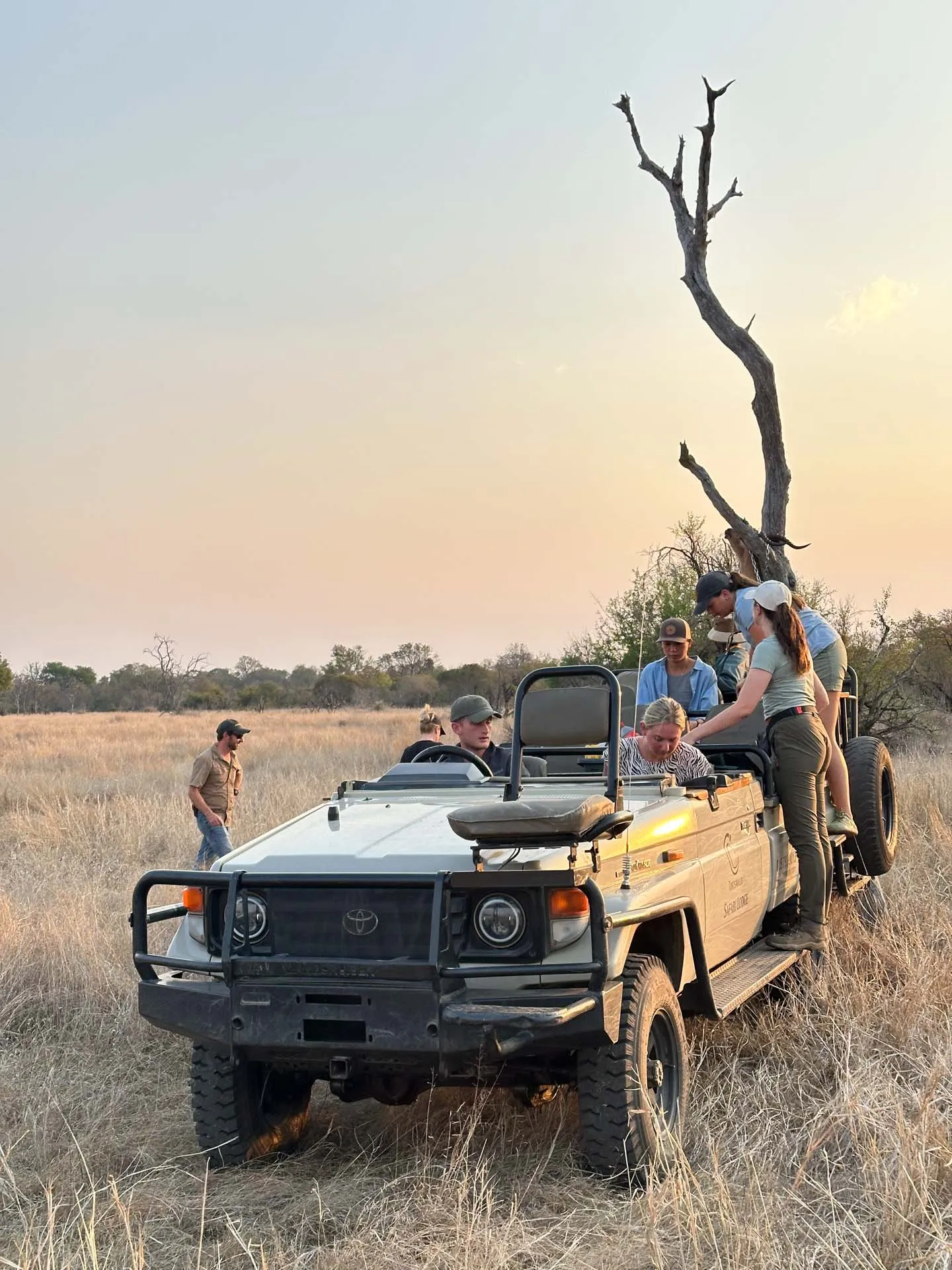 The team comprised a game reserve guide, reserve rangers, and a veterinary crew, each contributing their expertise. As the team gathered to discuss the evening’s objectives, the collaboration and precision in planning were evident. The guide skillfully navigated us to a strategic spot within the hyena clan’s territory, maintaining constant communication with other individuals throughout the reserve to ensure other predators were not approaching our operational area. Meanwhile, the rangers sourced the callup bait and kept a vigilant watch throughout the evening to ensure everyone's safety.