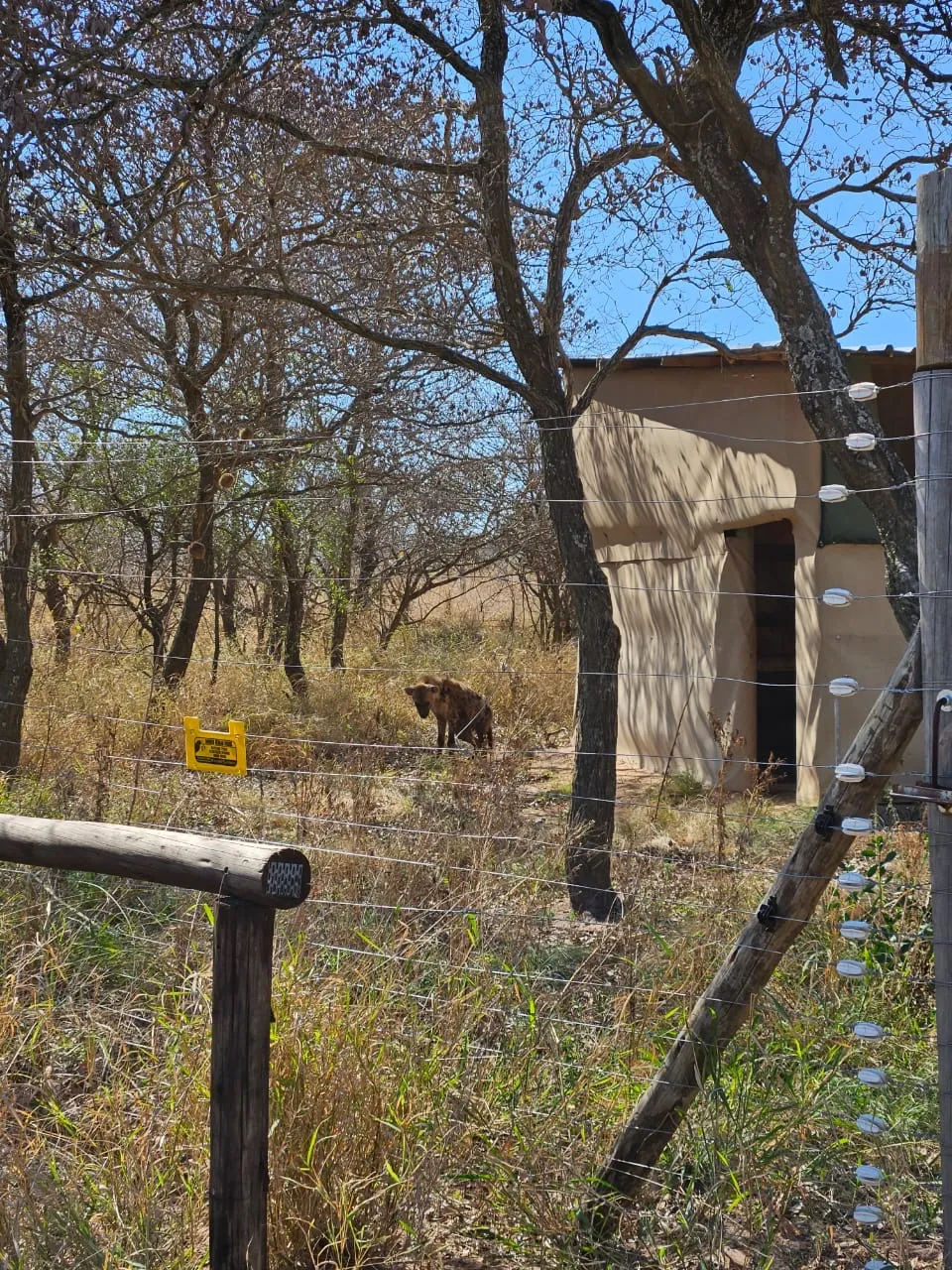 Wild Wonderful World contributed to a badly snared female spotted hyena found on Thornybush Game Reserve (first photo). The snare injury was so bad, she was kept in a temporary holding facility on Thornybush to recover. She even had a couch as a bed inside the stable of the boma (second photo). She was immobilised one last time for a final treatment and release back into the reserve (third photo). The wound had healed extremely well but there was irreparable muscle damage to the neck which meant that she would always have a strange neck stance. Thank you to Thornybush and other NGO partners for sharing the costs.