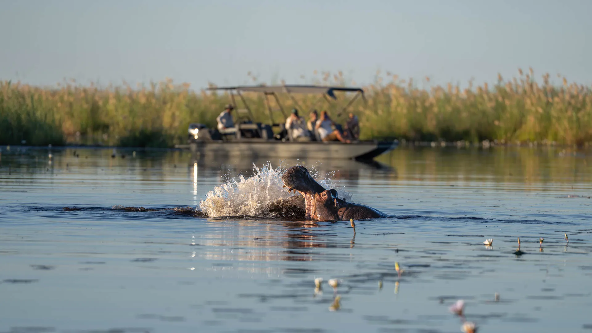 After two nights at the eastern most boundary - and therefore the driest section - of the Delta, head further west, towards the “Panhandle” where the five permanent channels originate. Be prepared to be immersed in lush verdant mossy landscapes dissected by midnight blue water channels dotted with bright white and lavender waterlily flowers and pea green lily pads as far as the eye can see, promising exciting water safari adventures and unique sightings of water-loving species.